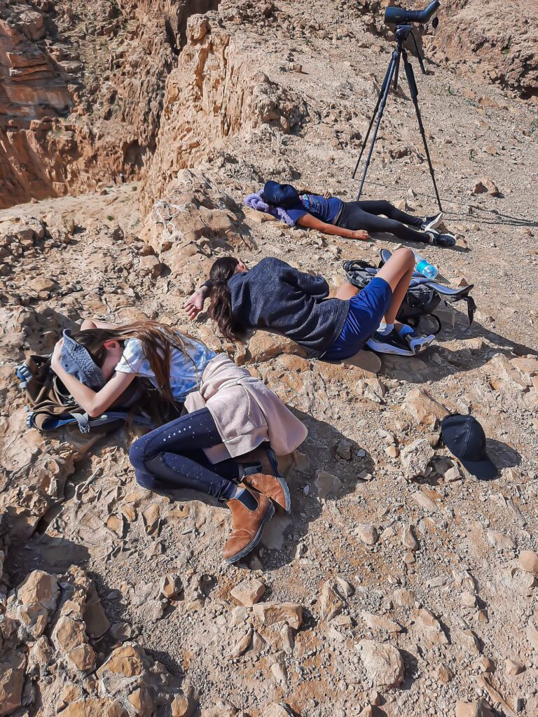 והדיונים המתלהטים שלהם, האם העורב השחור שמעלינו, הוא באמת שחור או אולי חום-עורף, והאם ההוא שזנבו קצוץ הוא במקרה מין נפרד. מי ידע שיש כל כך הרבה מינים של עורבים בצבע שחור? ולמי זה בכלל משנה? טרחנות צפרית. והמאכלים המוזרים שלהם, בפלות מעופשות ולחמניות מרוחות בבליל של חומוס וגבינה צהובה. איזו חרפה. והשפה הזו, הצפרית, עם המושגים הלא ברורים, שגם אם ננסה, לעולם לא נצליח לשחזר. ולמה הם בכלל לקחו אותנו לכאן, הרחק מהציביליזציה ונתנו לנו להתבשל בשמש, בעוד הם מפנטזים והופכים כל זיז בסלע לאיזו ציפור, שהם טוענים שהיא מעניינת?