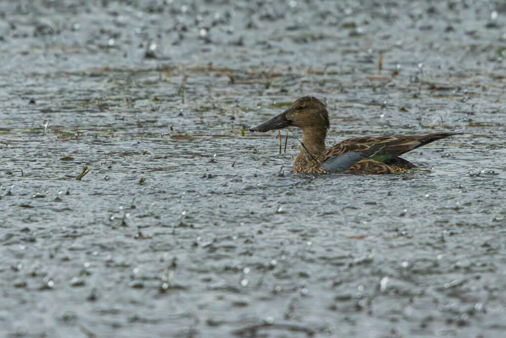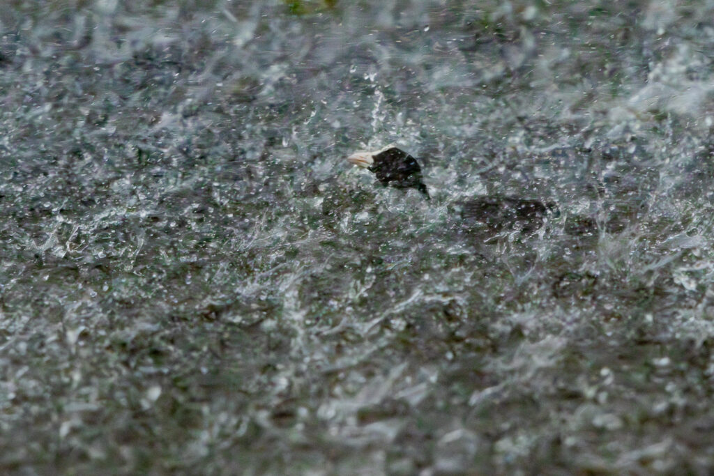 הגשם הופך לברד, כדורים קטנים ואז גדולים. חובטים במים, מועפים בעוצמה אל תוך המסתור, מכים בקיר ובי. מרית אחרונה ממריאה מבוהלת ונעלמת. כמעט כל הברווזים והאגמיות נעלמו, לא ברור לאן.