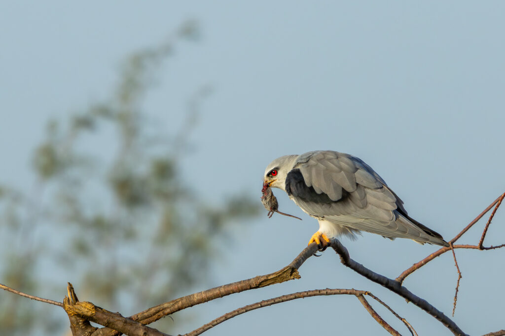 הדאה מתמקמת מעל לתעלה, מתייצבת. ניצוייה משתלב היטב באוויר האפרורי. נעה בלי נוע. מבטה נעוץ מטה, במטרה. חד ויוקד. ממוקד. מכות כנף קלות, רפרוף כמעט אפסי. שינויי מקום מזעריים, מנמיכה ומתקנת תנוחה. מוכנה להנחית את המכה. אך אז מתקרבים אליה שני עורבנים ומתחילים להציק לה. קרבים וקוראים בקול. אחד מגיע מלמטה ומשמאל, שני מגיח מלמעלה ומימין. מנסים להיות מתואמים, יעילים. לגרש אותה. שולחים אליה כנפיים ורגליים. אך היא מברישה אותם מעליה בקלילות. לרגע מתרחקת אל השדה בו מצמחת עתה החיטה ורועות היונים. אולי רוצה לתת לנברן להירגע מההמולה שהתרחשה מעליו, או להמאיס את המשחק על העורבנים, כנראה גם וגם. הם מניחים לה, רבים מעט זה עם זה, במעין משחק משועמם ושיבה לשגרה. ואז נוחתים על עץ אשל ועוקבים אחר תמרוניה במבט מחציף. שתיים שלוש דקות, במהלכן היונים שרעו בשדה פורחות בבהלה ונמלטות בין טרטורי זרעיות. היא לא שתה ליבה אליהן ושבה אל התעלה, אל מעל לקנים המרשרשים. שוב היא מיוצבת, נעה בלי נוע, ניצבת בנקודה אחת. רק רפרוף קל ממשב הרוח. מנמיכה מעט, מתקנת, ואז מתייצבת. מנמיכה עוד קצת ומתייצבת בגובה של ראשי הקנים. הם מרשרשים והיא שקטה. נוראה. מבטה חודר את סבך הקנים, חושף את כל שמהלך ביניהם חרישי. עוד תיקון קל לקראת המכה הקטלנית. היא מקפלת את הכנפיים, גופה מזדקר והיא צוללת במהירות. מאיצה. העורבנים עוקבים אחר צלילתה. צלליתה נעלמת בין הקנים ומתרוממת, עפה מרחק מה ונעמדת על גזע אשל תלוש והפוך. שורשים חשופים, בוכיים. והעיניים האלה, האדומות, הבוערות כשתי שמשות זורחות. מבטלות כל אפשרות של צל. מבטן מעביר בי גלי חום על אף הצינה החורפית. תורים ממריאים מקרבתה, נמלטים. שלדג לבן-חזה נמשך אל הטרף שבטפריה ונוחת לידה בצעקות. פורש לעברה את כנפיו ומנופף בהן, חובט וצועק. משלח לעברה את מקורו האימתני, אם כי בה בעת שומר ממנה מרחק בטחון. היא מתעלמת ממנו. עומדת ללא נוע. קפואה, מלבד המבט הזה, הבוער. השלדג מוותר ומתרחק, עף לחפש קורבן אחר, נוח יותר. עכשיו שבים שני העורבנים. נוחתים לידה, להציק לה ולגרשה. אך היא אדישה להטרדותיהם. ממשיכה לעמוד ללא ניע. כיצוקה מבטון ולא מנוצה. מתמקדת בנברן שגופו השמוט לפות בטפריה. היא רוכנת, שולחת אל הפגר הקט את מקורה וקורעת בבשרו. ברעבתנות, ביסודיות. ראשו נעלם וכתפיו, ועכשיו נמתחים מעיו כחבל טבור שמחבר את הצייד והניצוד. אודם מכתים את פני הדאה, כמעט ומגיע לעיניה, שאדמותן אדומה מהאדום שמכתים את הפנים ומטפטף לאדמה. שרידיו האחרונים של הפגר, זנב משתלשל ומיטלטל, נבלעים במקור. לידה הפוכה. שקטה. העורבנים מאבדים בה עניין וחוזרים למריבותיהם. היא מנקה את טפריה ונוצותיה מהדם ומשיירי הבשר והפרווה. ואז, נקייה, מרימה הדאה את פניה ואני מרעיד תחת למבטה, כנברן נלכד.