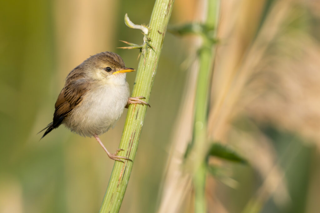 דרורי בית נוחתים על הקנים, מתלטפים במכבדי הפריחה. ביניהם שני דרורים ספרדיים. הם נמשכים לגרגירי החיטה המבשילים, אך חוששים לצאת אל השטח החשוף, דוחקים אלה באלה, מי יעז ראשון לעזוב את מבטח הקנים. בינתיים הם מתנדנדים על הקנים שנעים ברוח. פירחונים צצים מהסבך הפרוע של קוצים, קנים, שיחים ופרחים. הצהוב היוקד של חוח עקוד והכחול הבהיר של העולש מתווספים לירוק של הקנים ומנקדים את זהב החיטה. הדרורים מפטפטים ולבסוף אוזרים אומץ וצונחים למרגלות החיטה, ללקט גרעינים שיבשו ונפלו. פירחונים של פשושים, צופיות, ירגזים וקניות קטנות שהשלימו מעגל קינון ראשון ממלאים את חישת הקנים. דונגיות צהובות בבסיס המקור וציוצי רעב, שמעוררים אינסטינקטים הוריים. ציפורים בוגרות נעות פנימה והחוצה, מאכילות את הפירחונים ומעודדות אותם לעצמאות. הן עוצרות רגע על מנת לשיר ועפות כדי ללקט עוד מזון לצאצאיהן. פירחון של סבכי קוצים מופיע, מעפיל על גבעול של גדילן, שאיבד את תפרחתו הסגולה. בכנפיו ניצנים של צבע חלודה, כשל הוריו. עיניו עגולות ושחורות. הוא בוהה בי, מסוקרן. צקצוק אזהרה של אחד מהוריו המסתתרים והוא צולל ונעלם. פירחון של פשוש מנענע ניצן קצר של תחילת זנב. אביו שר מעליו. שלושה פירחוני צופית רודפים אחרי אימם, בעוד שני פירחונים של ירגזי מתחננים לאוכל. הם רוכנים אל אימם ומרפרפים בכנפיהם. היא דוחפת זחל למקורו של האחד ונמלטת מהשני. עננים נאספים ומכבים את זהב השיבולים, שמכסיפים. עכשיו, מתבלטת קנתרית כתומה שמבצעת מעשי לוליינות על שיבולי-השועל. נעה ממלען למלען, שומרת על שיווי משקל, מתהפכת וראשה מטה, מחושיה מגששים את הדרך עבורה. צבעה הכתום זועק, ממש כמו הצווחות של זוג קוקיות מצויצות שעוסק בחיזור קולני, לפחות עד שהשיבולים מתלקחות שוב בזהב החמה, שהשתחררה מחיבוק העננים. כְּתֹם הקנתרית נבלע שוב בצבעי הבעירה. טרטור רך של תור מצוי, המיה עדינה של תור צווארון. מזג אוויר שברירי. השיבולים רוחשות ברוח והקנים רוחשים בפירחונים.