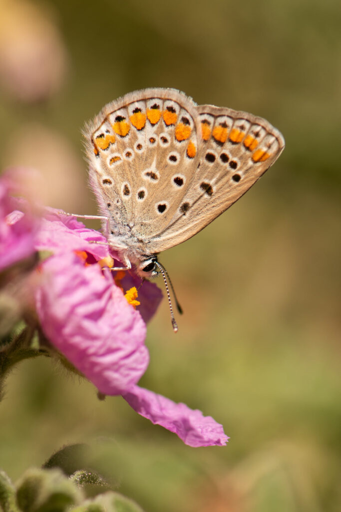 אנחנו מפטרלים על השביל בחיפוש אחר ציפורים. אין מהן הרבה, רק כמה חוגלות מבוהלות ועורבנים שבהיעדר ציפורים אחרות לריב איתן, נטפלים למספר עורבים. שעה חולפת, הטמפרטורות עולות וככל שהן עולות, כך עיניינו יורדות, מחליפות את הציפורים שאין בפרפרים שיש. אביבית מתעוררת ומותחת כנפיה וכחלילי שברק וגירניון שומטים עצמם מגבעולי דגן מזהיבים. יש גם תכליל איזוב או שניים, שמסרבים להיפרד מהגבעול אותו הם חובקים ברגליהם הזערוריות. צל של חיוויאי נופל עלי, מתמזג עם צלליות הפרפרים, כי עוד ועוד מהם ניעורים ויוצאים להשתכר מצוף הלטמים והצתרות: סטיריות פקוחות, אביביות וכחלילים שונים.
