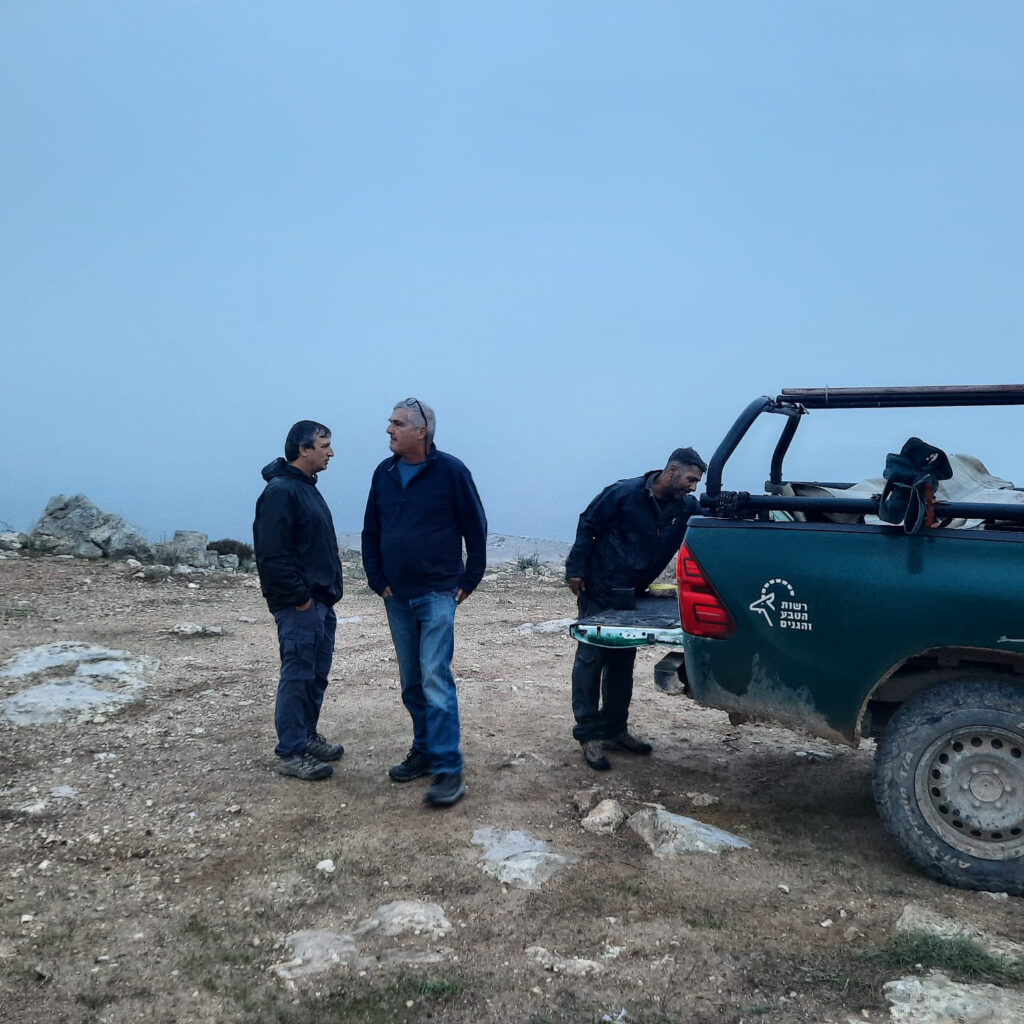 הזרזיף מתחזק לגשם ולמבול. הקרקע קמה לתחייה והופכת לבוץ נע ומתפלש. הוא נחרץ בפלגים שמזינים יובלים, שנקווים לשלוליות, שליעד צולח בהצלחה. אלומות פנסים נשלחות מהטנדר הירוק, להאיר את האפלה. טיפות הגשם מציירות בהן קוים ישרים של אור. האלומות ממשיכות הלאה אל תוככי החשכה, מאירות בה צבאים, שלוחכים עשב רטוב, או חוסים תחת חופת עצים. חנקן רדום ורטוב מסתתר בעץ שיזף. שני שלווי היום הופכים לשלווי לילה ושבים על כישוף המעוף המפתיע. אלומות האור חולפות דרך כנפיהם, שהופכות שקופות. הן מרפרפות ומפרפרות באפילה. שלושה כרוונים ממריאים באור ואובדים בחשיכה. פסי הכנף הבהירים שלהם עוד ממשיכים אתנו מעט, עד שנבללים בעלטה.