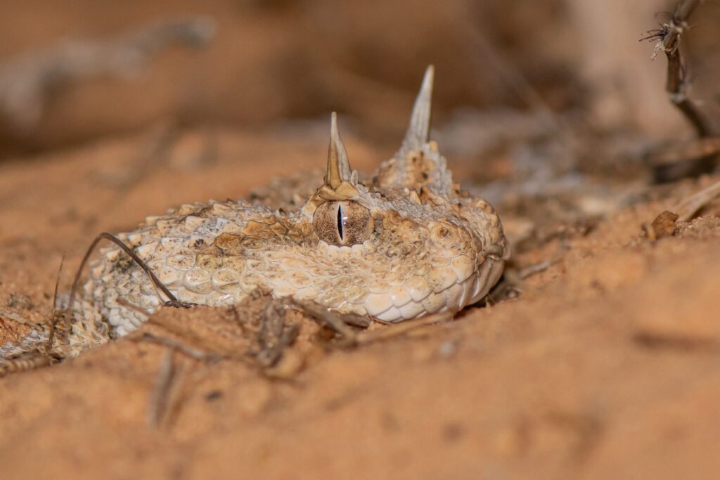 אני רוצה לחרוץ לו לשון בחזרה, לעכן החרטומים שמתחפר בחול למולי. אך חריצי אישוניו והקרניים המזדקרות ממצחו, מעבירים בי בעתה ומדביקים את לשוני לחיכי. לשונו המחורצת של הנחש משתרבבת מבין קשקשי לועו, מתעכבת קלות לחוש אותי. הוא טועם את ריחי, שולה אותו מריחות הלילה האחרים. ירח עגול וכתום ניתק מנופי האקליפטוס, שמתנשאים מהלימן הסמוך. הילתו מטילה אור קלוש על חולות הנגב. צלליות של שיחים נמוכים, מתעגלות על דיונות מעודנות מתאר. לשונו של הנחש נשלחת ללא לחש. שוב ושוב. הוא לא אוהב את ריחי. יש בו, בנחש, חשש. גם בי. רחש קשקשים. גופו מתעגל ומתעקל, מתפתל ומתחפר בחול. רק ראשו הדרקוני נותר חשוף, קפוא בנקודה קבועה. אישוניו המחורצים והממוקדים מבעירים בי את האש הקרה של החרדה.